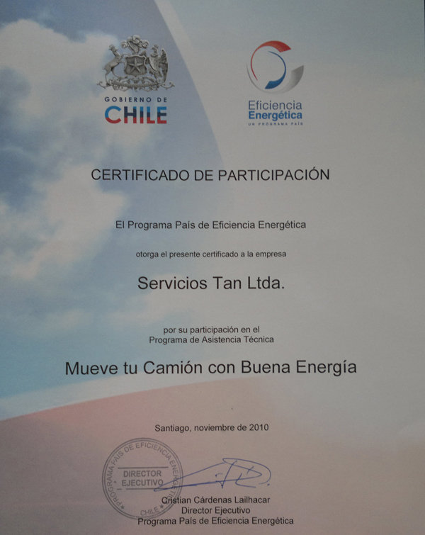 Se encuentra certificada por la empresa portuaria Valparaíso, además por el programa país de eficiencia energética.